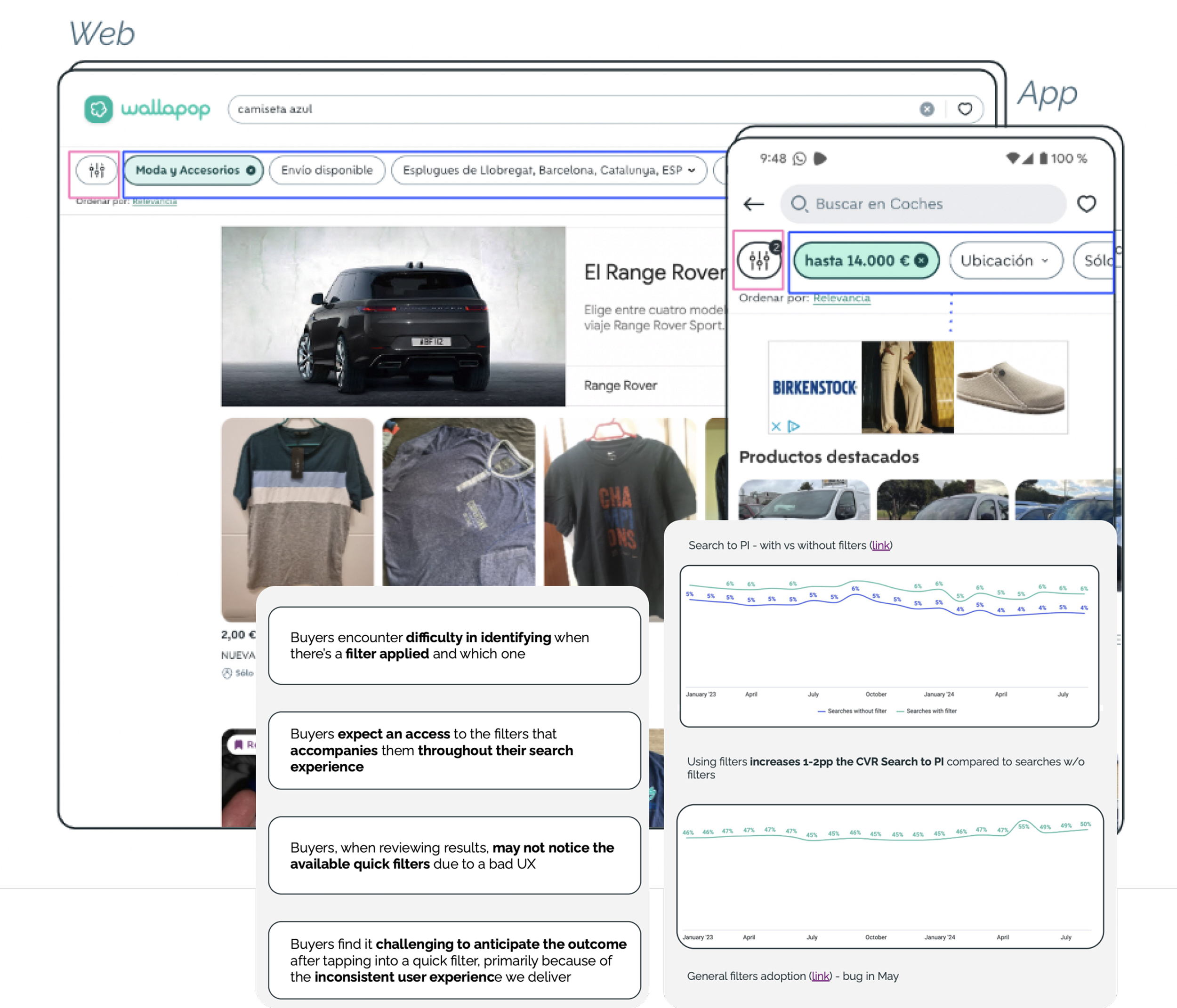 Buyers struggled with an inconsistent and unintuitive filter experience: duplicated entry points, low visibility, legacy constraints, and fragmented design across platforms.
